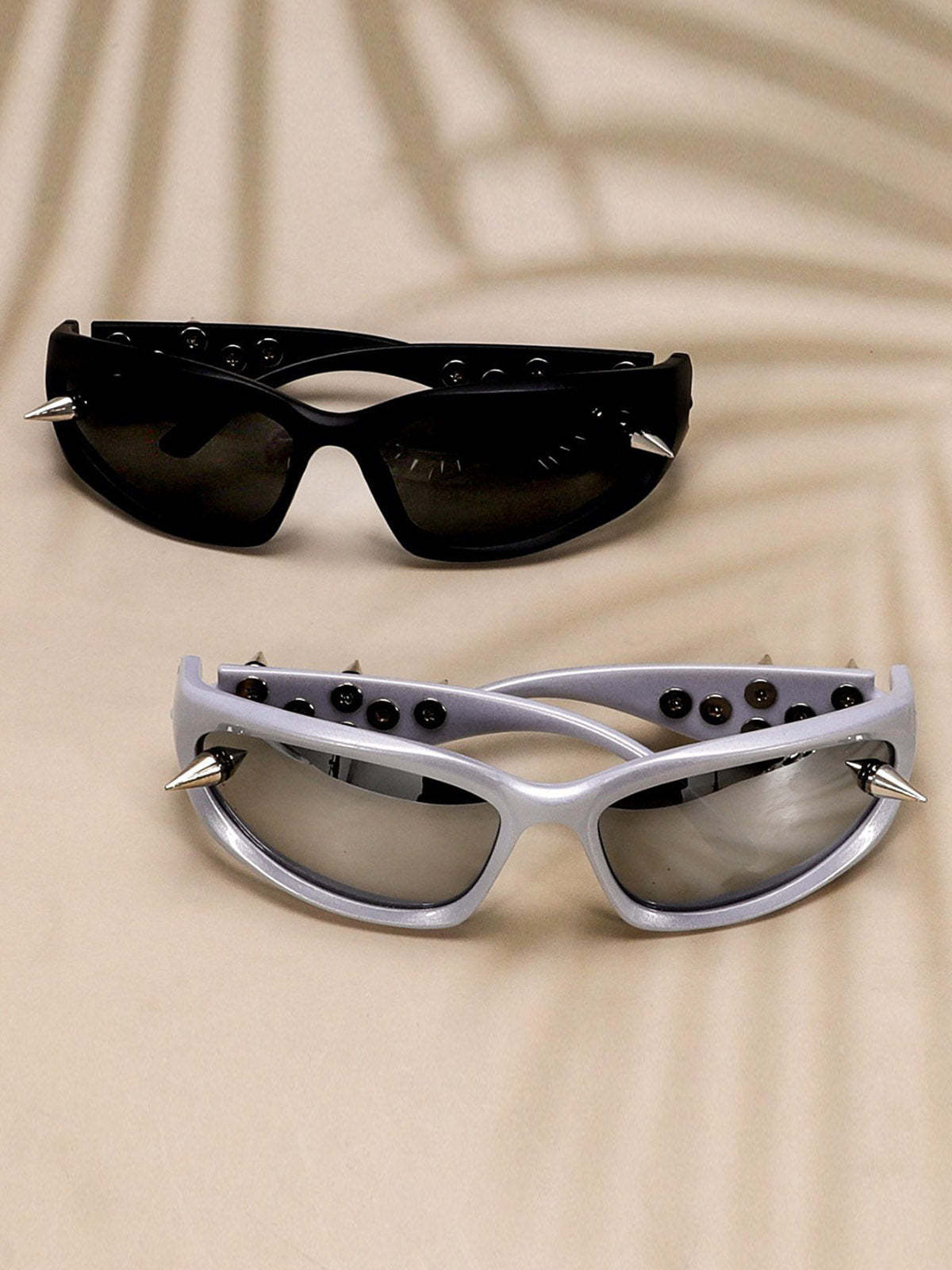 • Design Elements: Rivets on the temples, spike accents on the frame