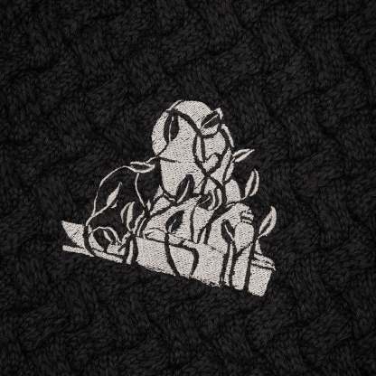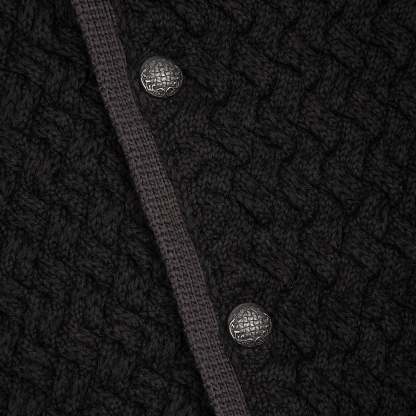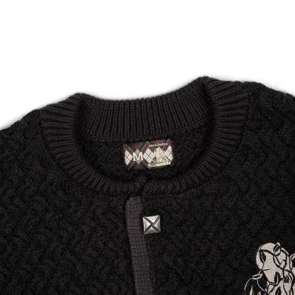100% cotton / basket weave knit / embroidery on front and back / custom buttons / fits true to size