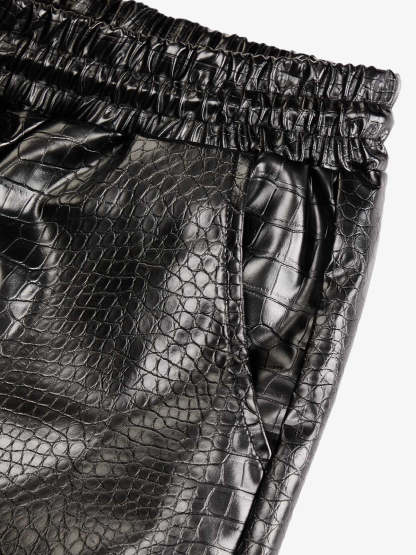• Design Elements: Bold "BLACK" logo print in metallic silver, elastic waistband with adjustable drawstring
